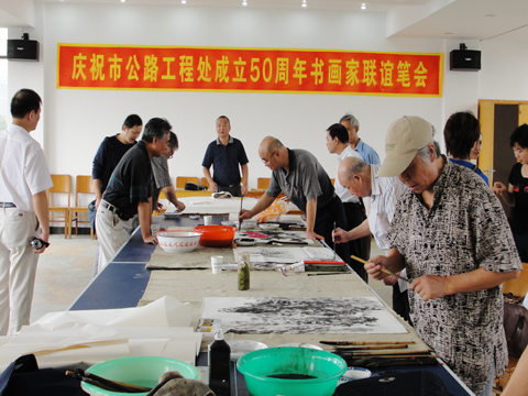 為慶祝我處成立50周年,9月25日上午,我們邀請了安慶市知名書畫家來我處舉行書畫聯(lián)誼筆會。筆會現(xiàn)場,六位老一輩書畫家韋遠(yuǎn)柏、馮仲華、姚道余、余龍生、唐罡、房學(xué)朋揮毫潑墨,興致盎然?,F(xiàn)場氣氛熱鬧非凡,廣大職工受益匪淺。