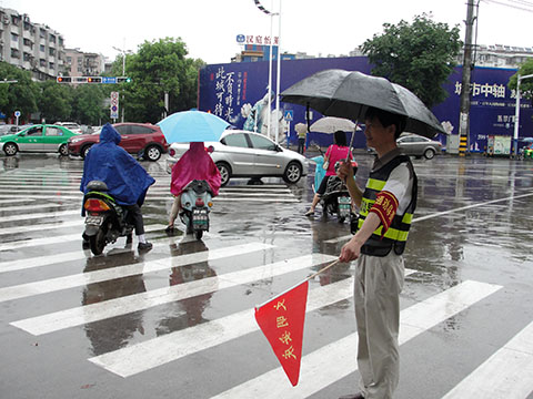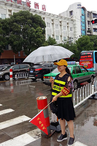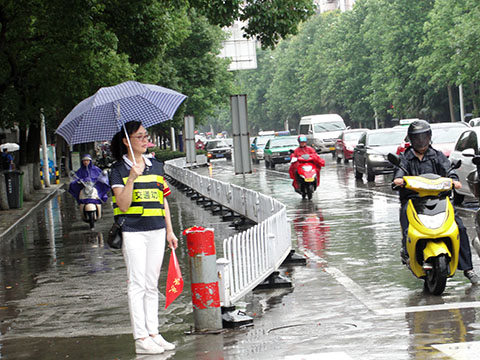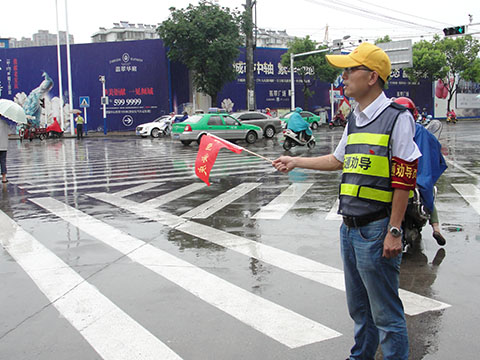6月30日早上7點(diǎn),天空正下著雨,公路工程處4名黨員志愿者已經(jīng)來(lái)到市宜城路與孝肅路交叉路口,大家統(tǒng)一佩戴黨徽,穿著印有“交通勸導(dǎo)”字樣的背心、戴著袖章,拿著“安慶文明”小紅旗,于早上上班高峰期耐心引導(dǎo)行人文明過(guò)馬路。在行人、非機(jī)動(dòng)車(chē)輛經(jīng)過(guò)交通路口時(shí),引導(dǎo)他們嚴(yán)格遵守交通信號(hào),有序通行,對(duì)于行人亂闖紅燈、不走人行橫道,以及非機(jī)動(dòng)車(chē)輛占用機(jī)動(dòng)車(chē)道、載人超員等不文明交通行為及時(shí)制止和勸導(dǎo),進(jìn)一步提升群眾的文明出行意識(shí)。